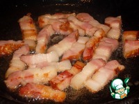 Извлекаем грудинку. В этом же масле обжариваем «до стекла» лук, порезанный полукольцами… |