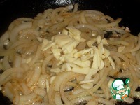 Туда же отправляем рубленый чеснок. Обжариваем до чесночного запаха… |