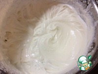400 мл сливок взбить, продолжая взбивать по частям влить бананово-шоколадную смесь. |