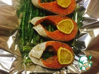 Фольгу расстелить и на неё выложить спаржу, вообще спаржу можно заменить любыми замороженными овощами (фасоль, брокколи и пр.) |