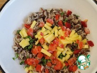 Манго нарезать мелким кубиком. В чашу выложить рис, манго, болгарский перец, посолить, поперчить, влить сок лимона, перемешать и убрать в холодильник на час. |