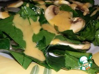 Об'единить все ингредиенты для салата, выложить на блюдо, сверху полить соусом. |