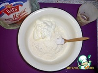 Берем два стакана муки, один стакан сметаны и одну чайную ложку соли. |