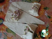 На каждый треугольник положить по 1 ст. л. начинки и свернуть тесто в рогалик. |