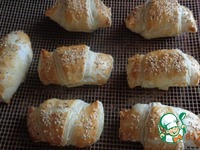 Описание: Слоеные рогалики к чаю с сочной сырно-ветчинной начинкой.