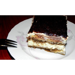 Выкладываем печенье на низ формы, сверху смазываем кремом, присыпаем орехами, можно и тертым шоколадом. Снова слой печенья и оставшийся слой крема. |