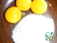К желткам добавляем сахар и взбиваем миксером до белой однородной массы. |
