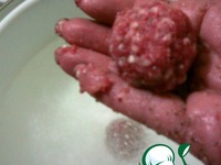 Формирую из фарша ежики и бросаю в кипящую воду (1,5 литра). Размер ежиков зависит от ваших предпочтений! Огонь - средний. |
