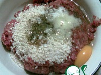Хорошенько перемешиваю фарш, промытый рис, яйцо, соль, специи |