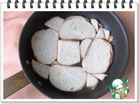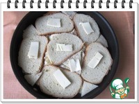 На начинку укладываем второй слой хлеба. На каждый ломтик хлеба кладем тонкий лепесток сливочного масла. Ставим форму в разогретую духовку минут на 15. |