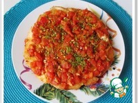 Увеличиваем температуру духовки до 220 град. и ставим форму на самый верхний уровень на 5-7 минут. Помидорный слой должен слегка подвялиться. Вынимаем пирог из духовки. Готово! |