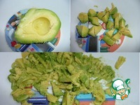 Авокадо очистить. Нарезать небольшими кусочками, сбрызнуть лимонным соком, присолить. Размять вилкой |