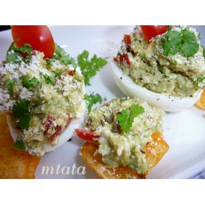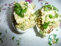 Описание: Предлагаю легкую закуску - яичный белок с начинкой из яичного желтка с авокадо, помидором и специями. Закуска хороша с чипсами, с черным хлебушком. Экспериментируйте и наслаждайтесь!!!