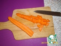 Шинкуем морковь в произвольном порядке. Мне нравится крупно вот такими пластиками. |