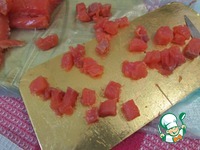 Слабосоленую семгу (форель, горбушу, кету) нарезать небольшими кусочками. |
