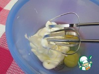 В миске соединить майонез, яйца и сахар. Взбить венчиком до однородности. |