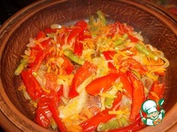 В посуду для тушения выкладываем половину овощей... |