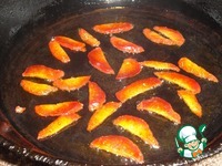 Во второе сковороде, на оставшемся оливковом масле обжариваем кусочки чоризо почти "до шкварок"... |