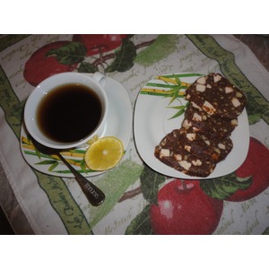 Как только колбаса затвердела, ее можно резать и подавать к чаю или кофе. Всем приятного чаепития! |