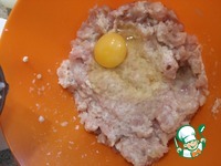В фарш добавляем лук, яйцо, соль, перец и размоченный в молоке хлеб. |