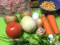 Время приготовления я указала без варки бульона, поскольку я бульон накануне сварила из косточек, с которых обрезала мясо. Накануне же, на ночь замочила нут, а утром отварила до полуготовности. |