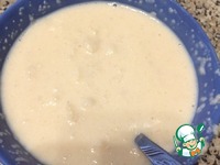 В большой ёмкости для смешивания творог хорошо размять вилкой или картофелемялкой. Добавить взбитые желтки, запаренную манку, гречневую муку. Хорошо размешать. |