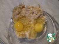 Бананы размять в пюре. Чем спелее будут бананы, тем лучше. Добавить яйца и вымешать до однородности. |