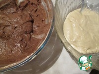 На шоколадное тесто выкладываем белое и тоже разравниваем. |