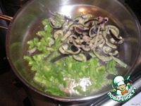 Свеклу тонко нарезать соломкой. Я натерла в кухонном комбайне. В глубокую сковороду положить свеклу, добавить лимонный сок и пару половников рыбного бульона. Тушить на среднем огне минут 15. |