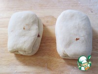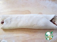 Разрезать на две части. Чтобы при раскатке начинка не выходила, со стороны разреза завернуть наверх Получаются вот такие заготовки |