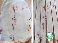 Из каждой заготовки раскатать лепешку и разрезать ее на полоски, шириной 1 см |