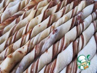 Готовое тесто обмять и разделить на 2 равные части. Из каждой части раскатать пласт, толщиной 5 мм Поверхность смазать шоколадной пастой, смешанной с растопленным шоколадом. |