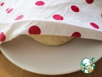 В муке сделать лунку и добавить молочно-желтковую смесь. Замесить мягкое тесто. Накрыть тесто полотенцем и оставить в теплом месте на время, пока тесто не удвоится (1.5-2 часа). |