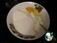 Готовим начинку: смешиваем сметану, яйцо, сахар, ложку муки с горкой и ванилин. Можно взять два яйца и муку без горки, но я пеку часто и яйца экономлю)) |