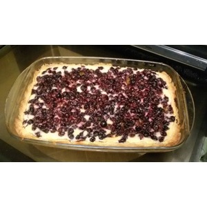 Сверху вылить сметанную начинку, затем положить ягоды. Поставить в разогретую до 180 градусов духовку на 40-50 минут. |