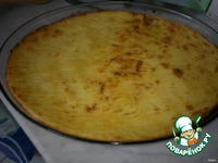 На противень выкладываем слоями: пюре - фарш - пюре. |