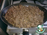 Начинка: делаем зажарку из лука + кедровые орешки + фарш + соль + специи. |