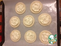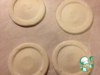 Из теста выемкой вырезать кружочки. В центре каждого кружочка сделать углубление. |