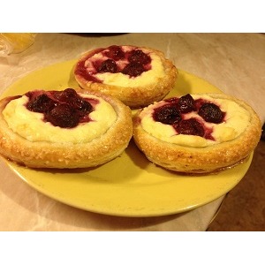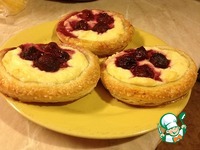 Сверху на творог разложить ягоды. Разболтать яйцо с 1 столовой ложкой воды и смазать края тарталеток. Посыпать края оставшимся сахаром. |