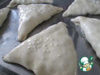 Тесто режем поперёк, раскатываем. Начинку класть лучше ложкой, а не вилкой. Количество лука пусть не пугает, так и должно быть. |