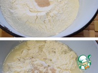 В чашку просеять муку, добавить дрожжи и соль. Влить воду комнатной температуры. |