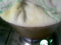 Крышку обматываю плотно полотенцем и хорошо закрываю казан, огонь уменьшаю до минимума и готовлю минут 20. За это время рис теперь впитывает в себя масло. Ни в коем случае нельзя мешать и открывать крышку. Затем, когда пройдет время, открыть, хорошо, перемешать, крышку закрыть и еще дать минут 10 постоять. Если выдержите все условия, у вас получится такой рассыпчатый, необычайно ароматный и вкусный узбекский плов!!!