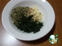 Чеснок мелко нарезать, добавить к нему перец, кардамон, прованские травы, укроп. Посолить по вкусу. |