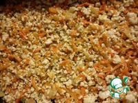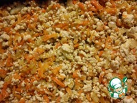 Фарш обжарить, добавить лук, затем морковь, еще немного поджарить. Посолить, поперчить. Форму для запекания смазать растительным маслом и выложить половину обжаренного фарша. |