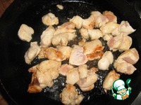 На сковороду налить 3 столовые ложки рафинированного подсолнечного масла. Обжарить мясо на сильном огне для корочки с 2 - ух сторон. |