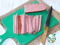5. Варено-копченую колбасу делим на 15 полосок, длиной ~12 см. |