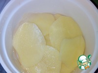 Смазываем формочки растительным маслом. Укладываем первый слой картофеля. |