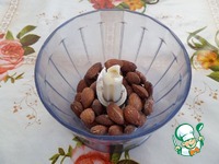 Для начала приготовим посыпку для пирога. В чашу блендера выкладываем миндаль. |