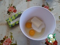 Готовим тесто для пирога. В чашку разбиваем яйца. Добавляем соль, сахар и сливочное масло ТМ "Милье" (комнатной температуры). |