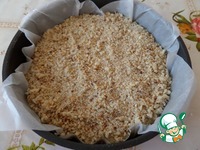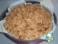 Достаем из холодильника приготовленную посыпку. Выкладываем ее поверх теста. Ставим форму в разогретую духовку. |